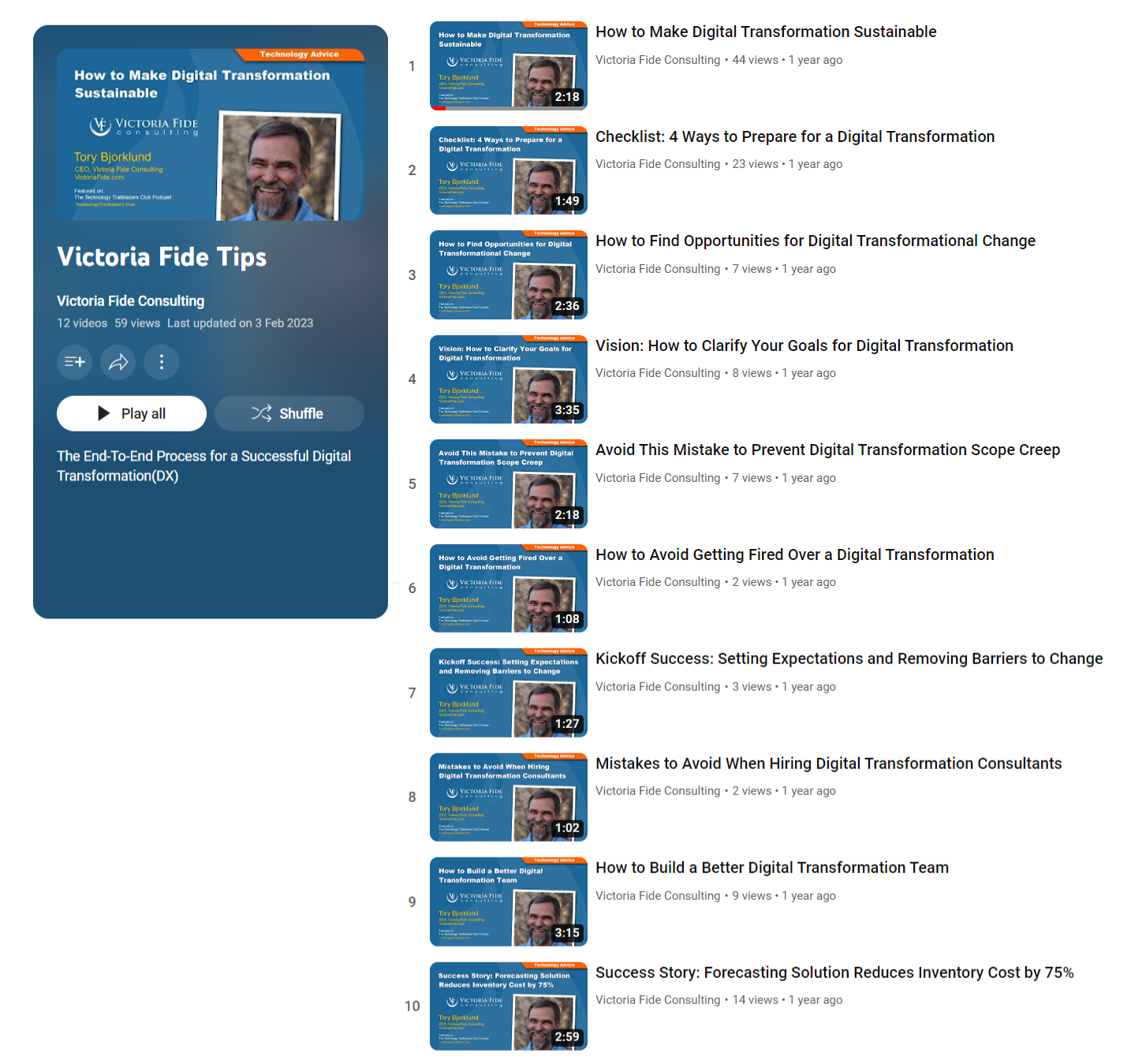 Victoria Fide Consulting (VF) is a digital transformation firm serving companies with $300 million+ in annual revenue. They had only recently launched their digital transformation consulting business when they contacted me for marketing help, though the CEO had made multiple startup attempts in the past. Months earlier, he had read the free Content Marketing Starter Kit eBook available on my website and was curious to learn more. His new business was on a tight budget and they weren't sure where to begin. Admittedly, they knew little about marketing.
